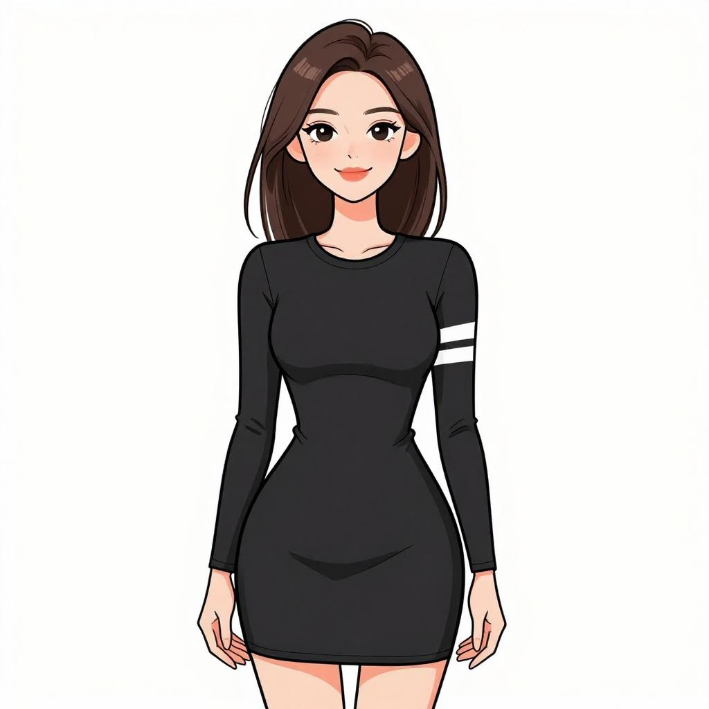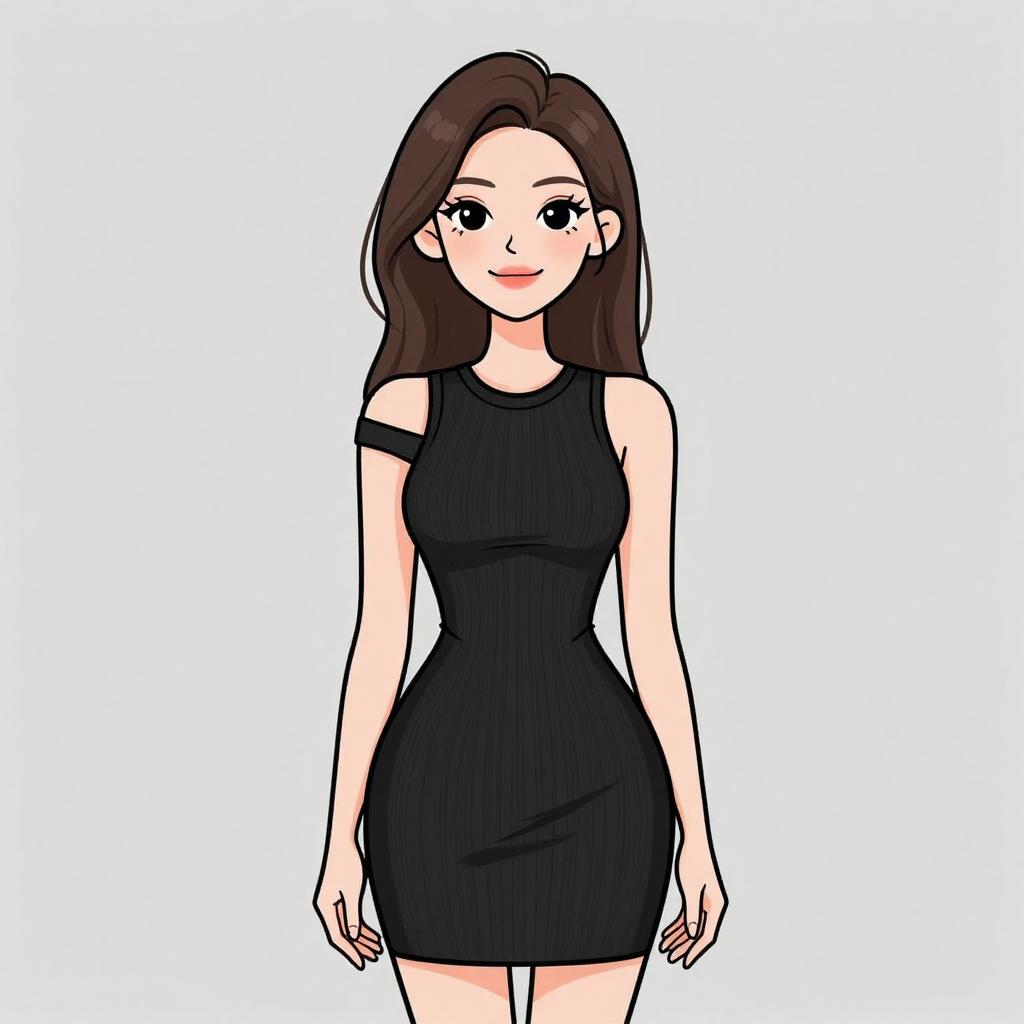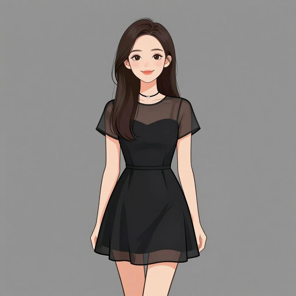 Smiling Woman in Black Mini Dress