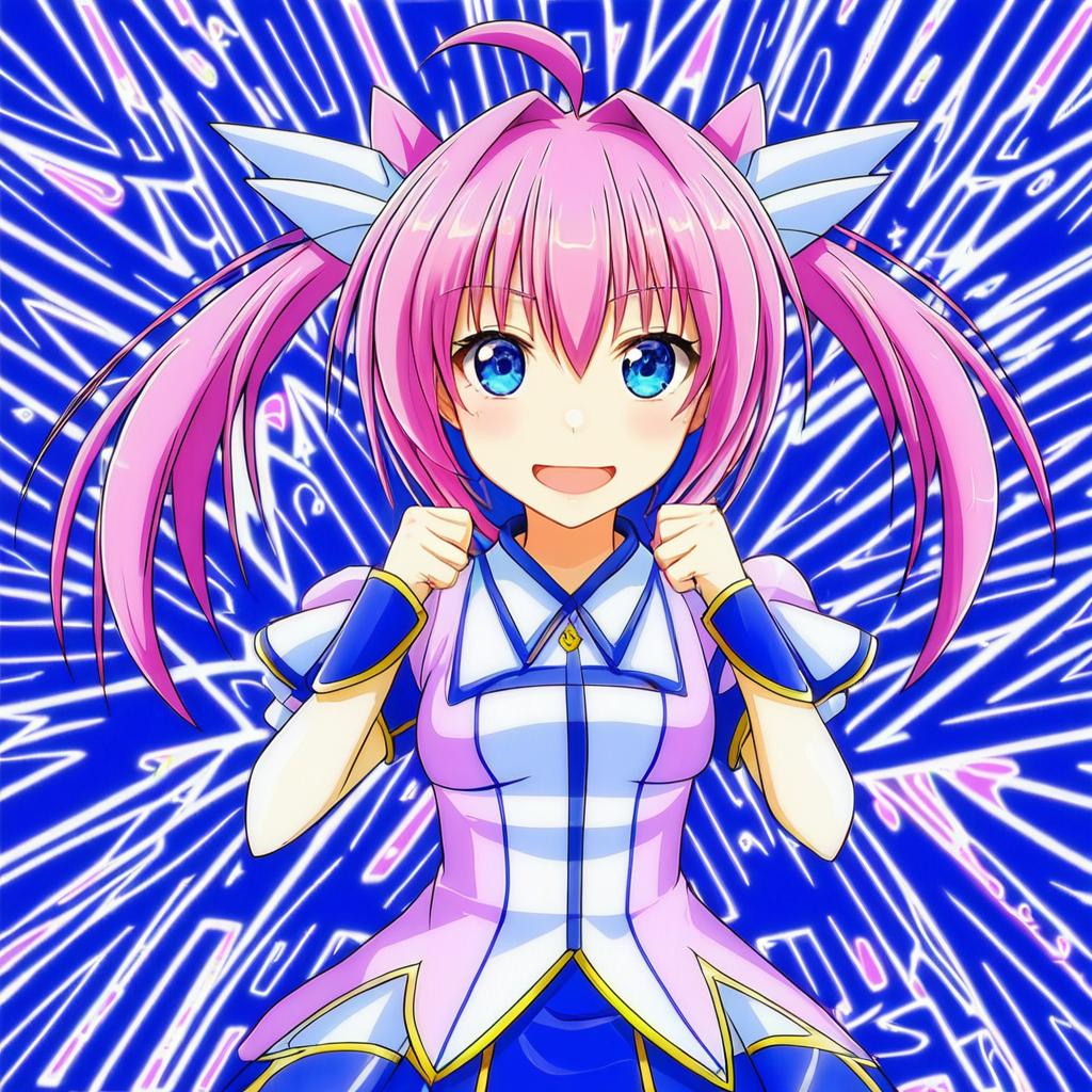 Caro ru lushe, lyrical nanoha, 1girl, blue eyes, pink hair, ahoge, by artist chaki (teasets), anime