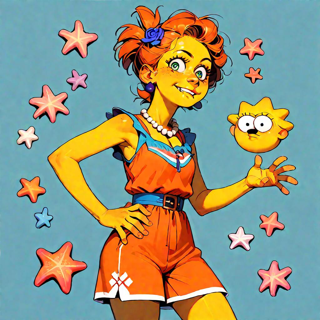 Score_9, score_8_up, score_7_up, zPDXL, four fingers, circle eyes, overbite, dot pupil, source_cartoon, toony, theSimpsonsstyle, yellow skin, solo, cowboy shot, 1girl, Lisa Simpson, kid, orange dress, pearl necklace, starfish hair