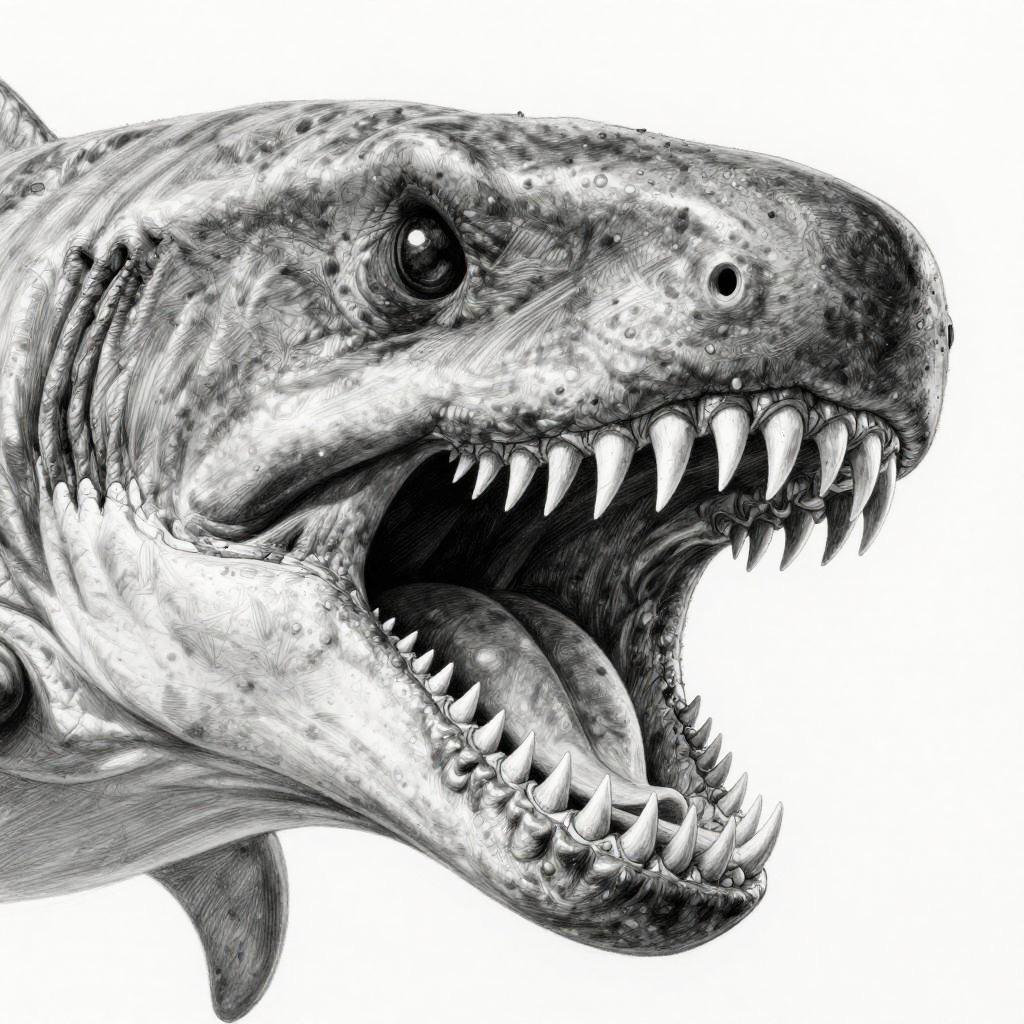 Detailed Megalodon Pencil Drawing