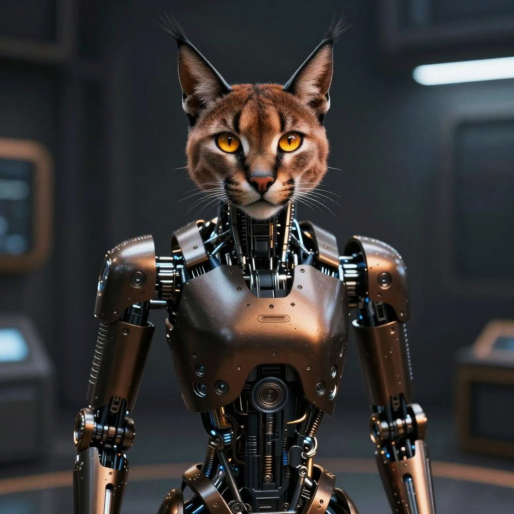 Stippling Anthropomorphic honey badger bounty hunter in sleek obsidian nano-mech with bioluminescent circuitry and matte-black chrome plating Sorayma science fiction fantasy illustration style, precisely detailed, highly detailed style as superrealism, hyper realistic, super shiny robot, chrome, shiny gold, smooth aesthetic, chrome room background, High resolution. Photorealistic lighting, unreal engine 5,