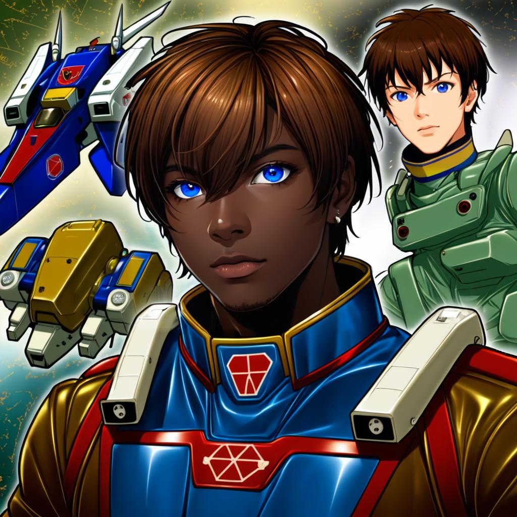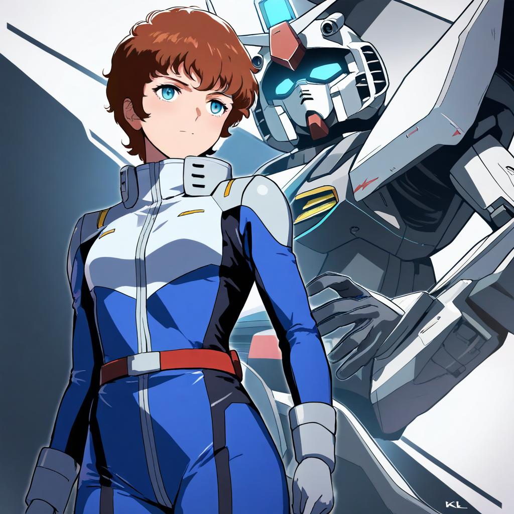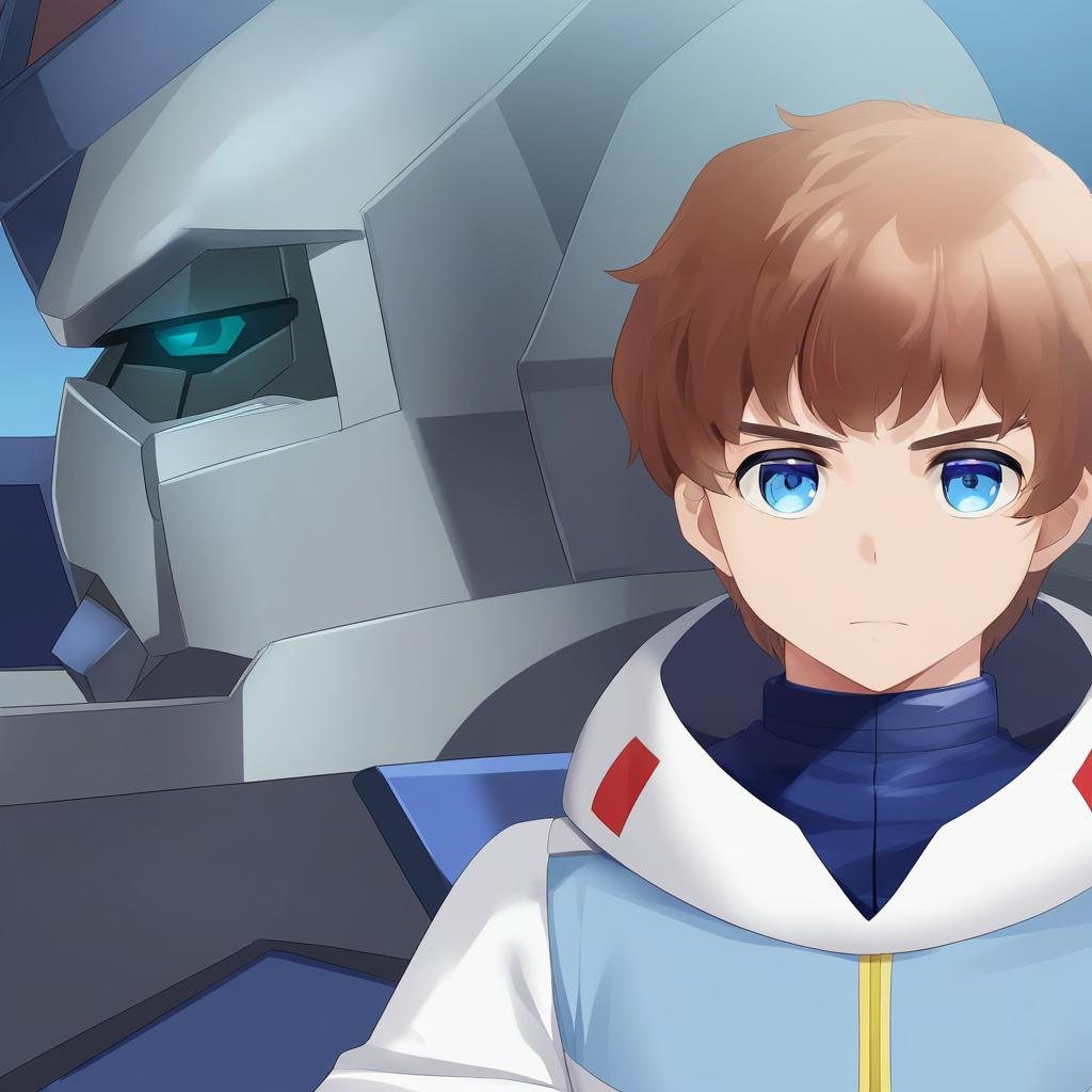 Amuro ray, gundam, 1boy, blue eyes, brown hair, short hair, pilot suit, by artist kinona, anime