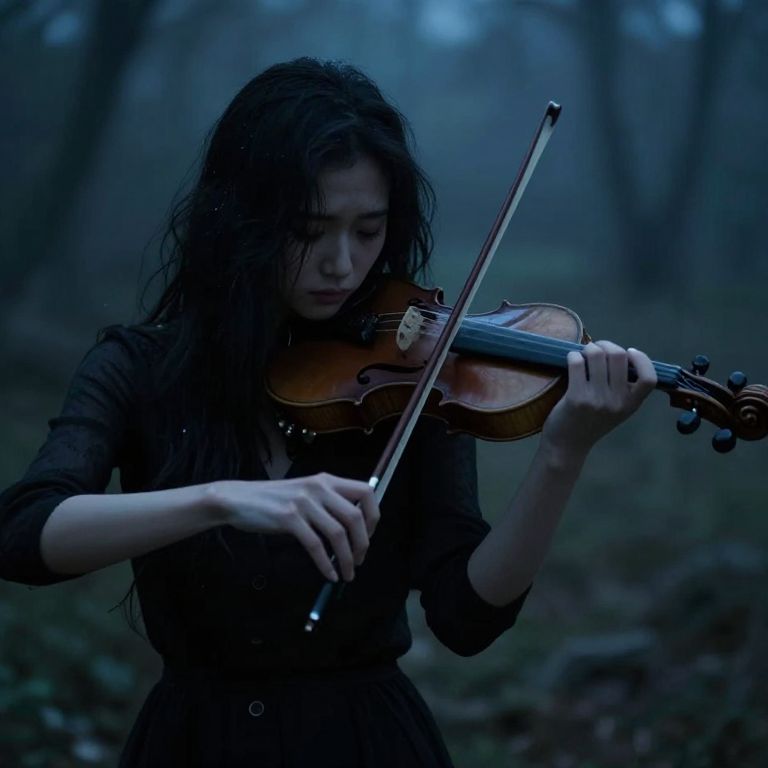 In a realm where sorrow takes form, a solitary violinist carves the air with his melancholic melody, weaving a tapestry of intangible grief that resonates with the quiet ache of the soul.