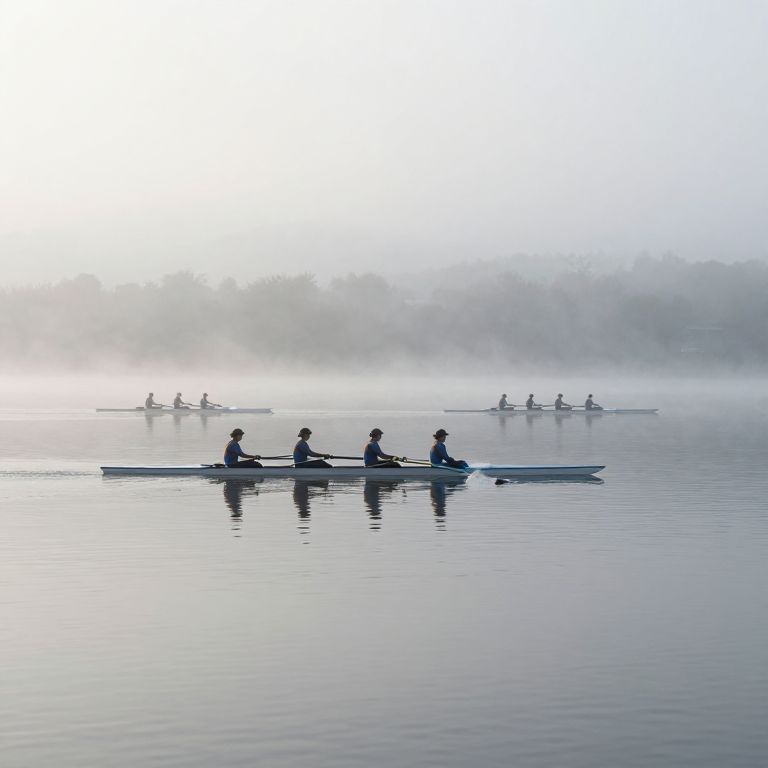 Silent Rowers on Misty Lake