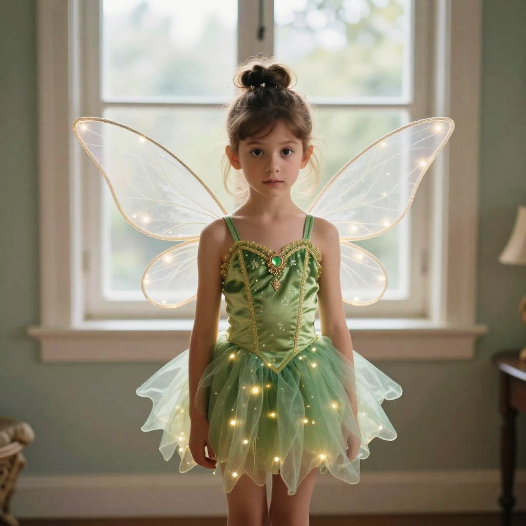 Young Girl in Tinkerbell Fairy Costume with Lighted Wings