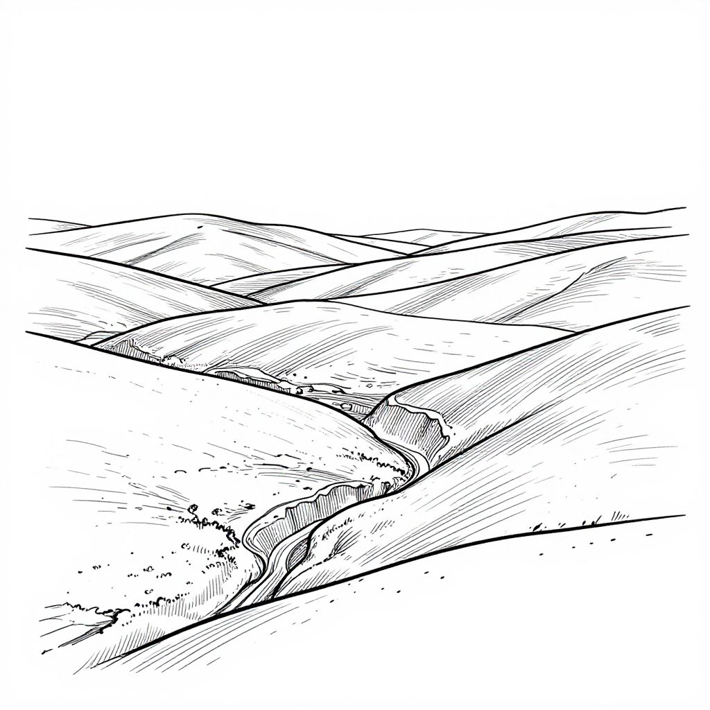 Serene Landscape Outline Drawing