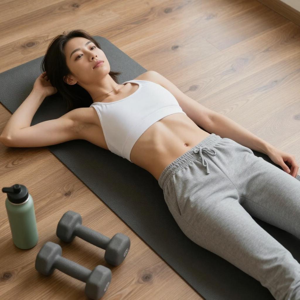 Muscular Woman Stretching in Gym