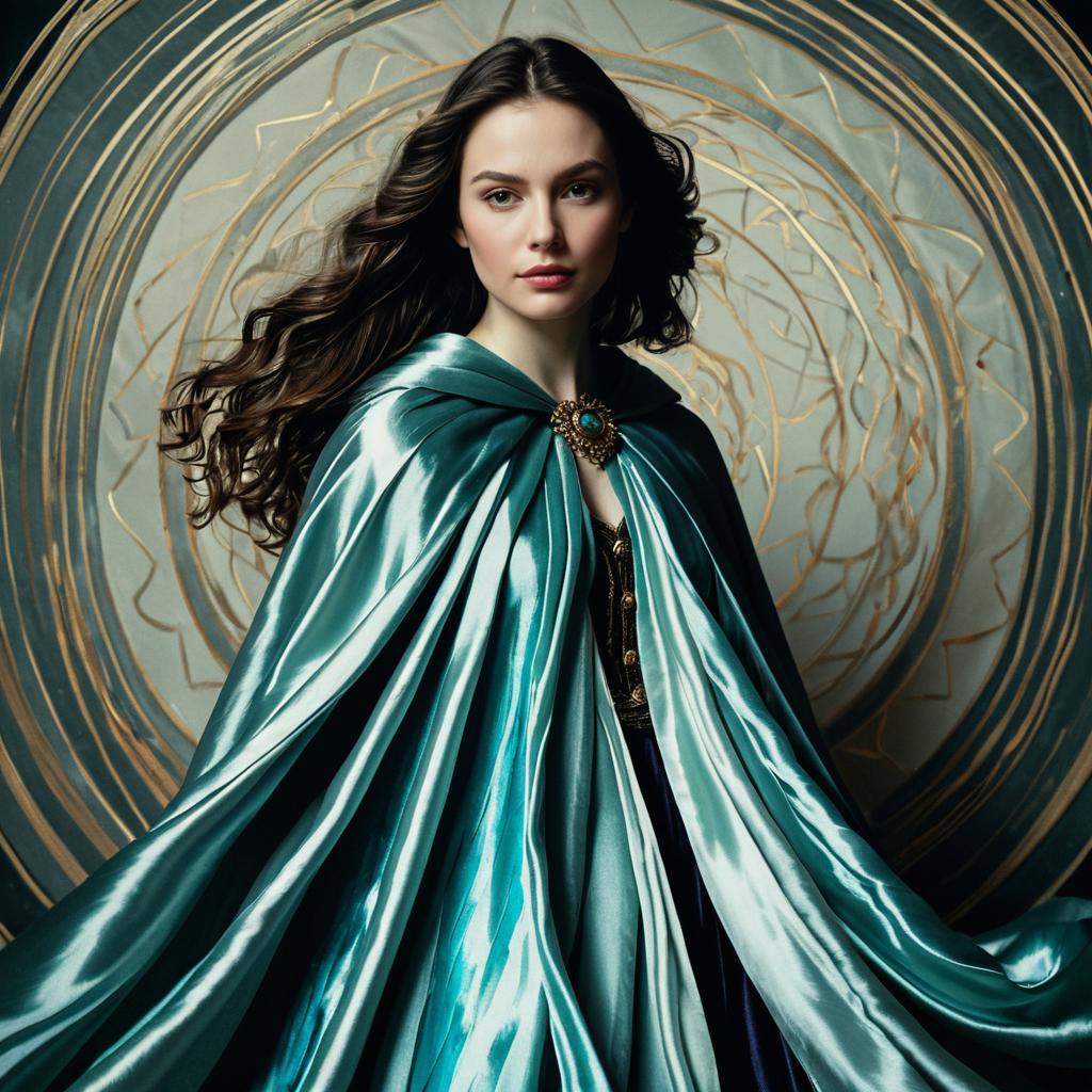 Young Woman in Flowing Fantasy-Inspired Silk Cape