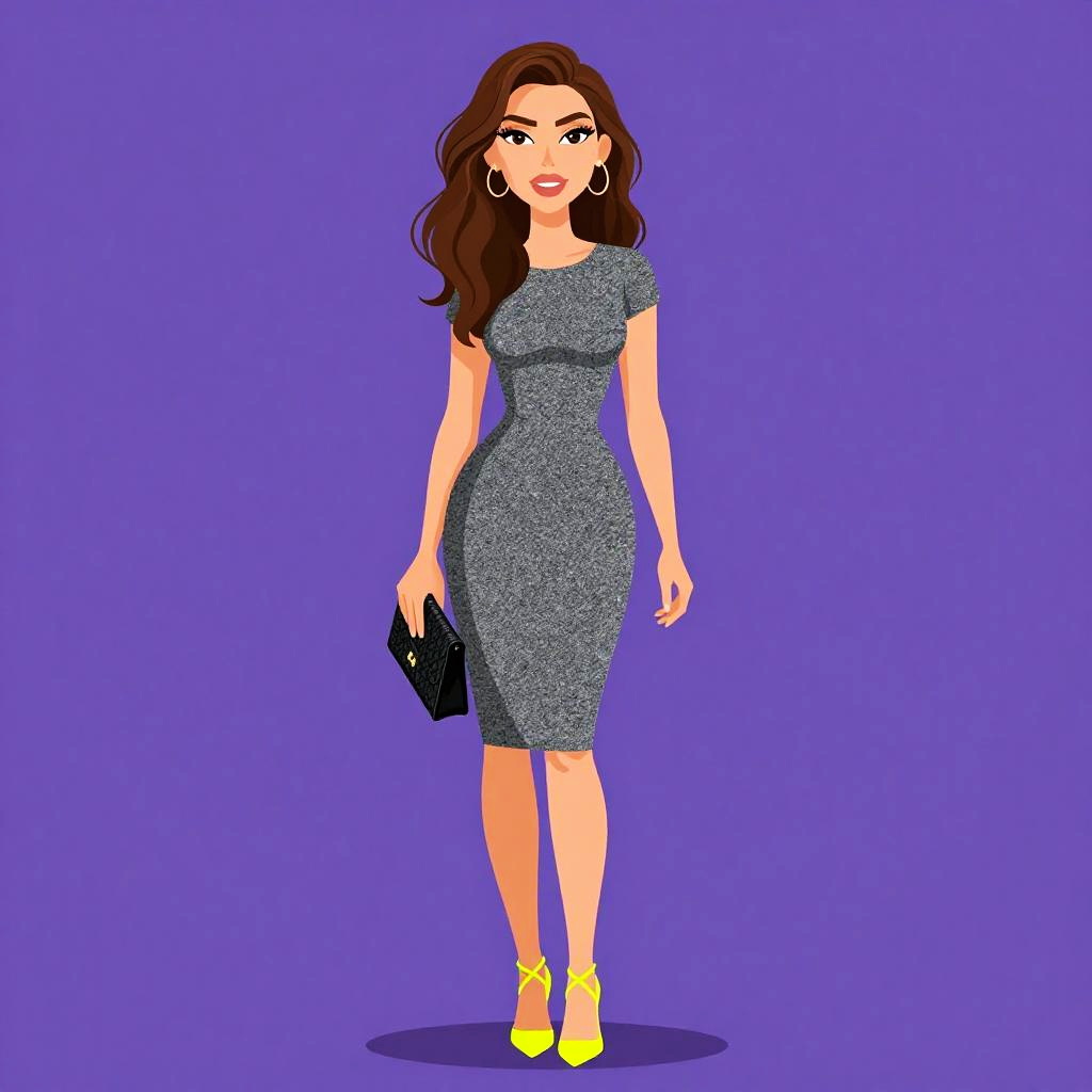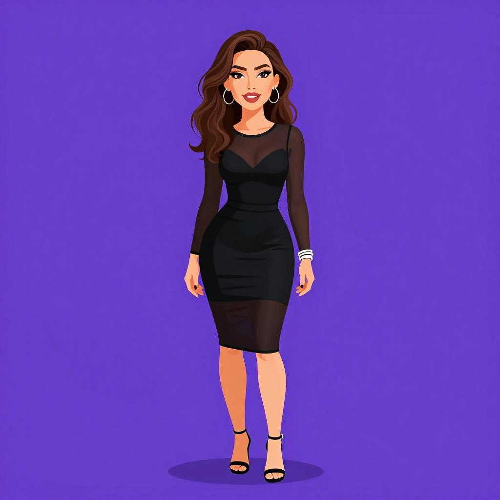 Woman with pretty face and pretty hair. Woman, modern chic, black blazer dress with satin lapels, plunging neckline with lace detail, thigh-length hem, long sleeves, black pointed-toe stiletto heels, minimal makeup, straight hair, studio background. --sref 1467