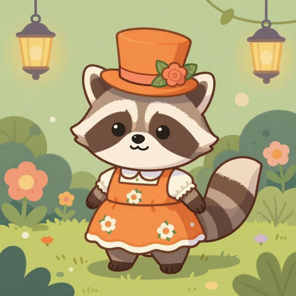 Kawaii Raccoon in Colorful Trash Can