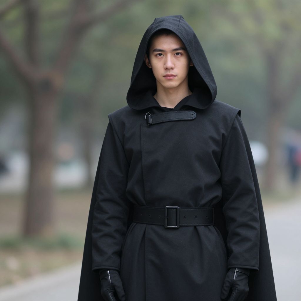 Realistic Male in Black Hooded Cloak