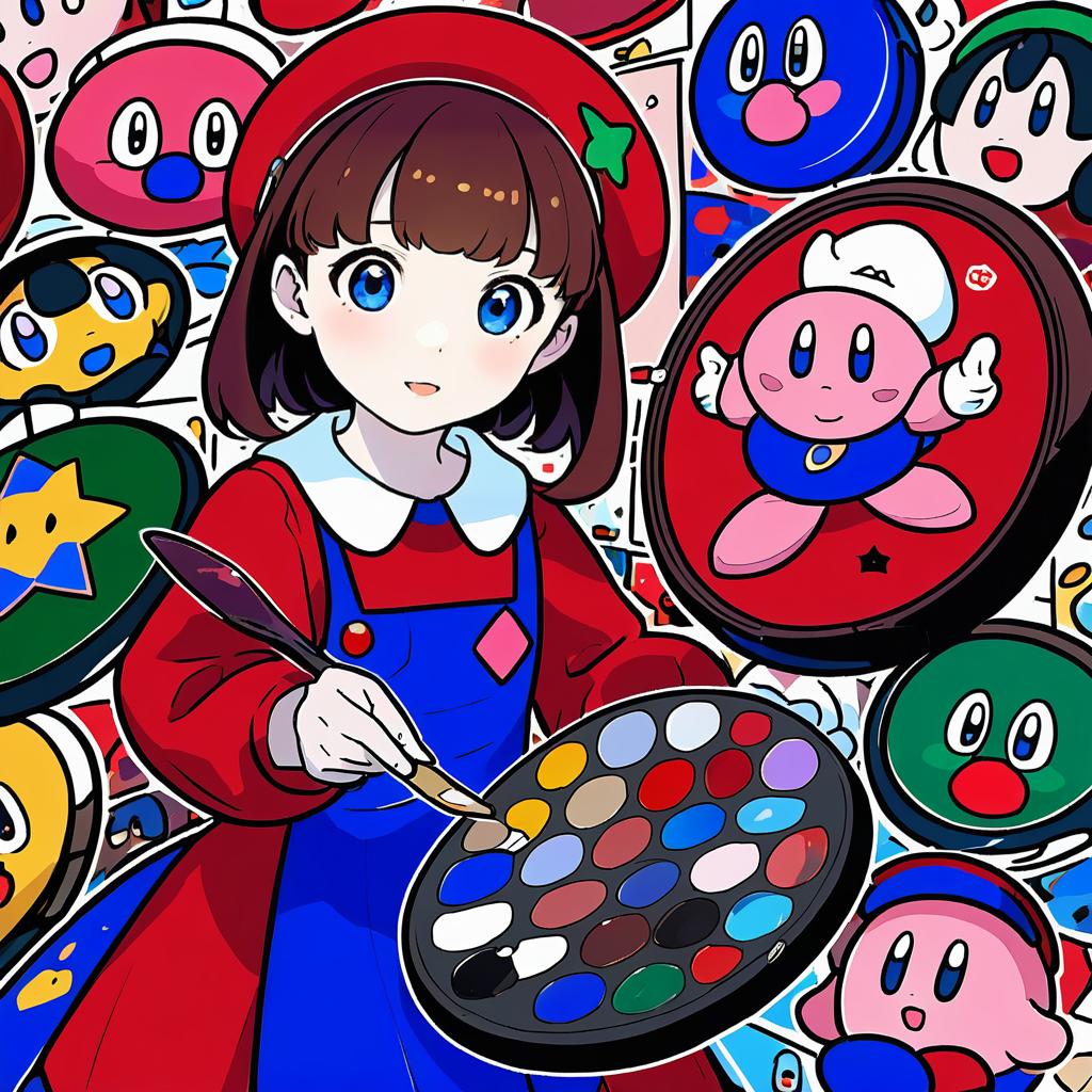 Illustration of Adeleine, kirby (series) in the style of Lillly