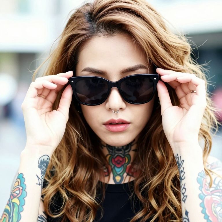 This collage photo features a tattooed Asian woman with long brown hair, hugging a baby with similar hair color. The woman has colorful, intricate tattoos covering her arms and shoulders. The top right image shows her with a confident expression, wearing a white shirt. The bottom right image shows her back, showcasing extensive arm tattoos. The background is dark and indoor. The baby looks curious and content.