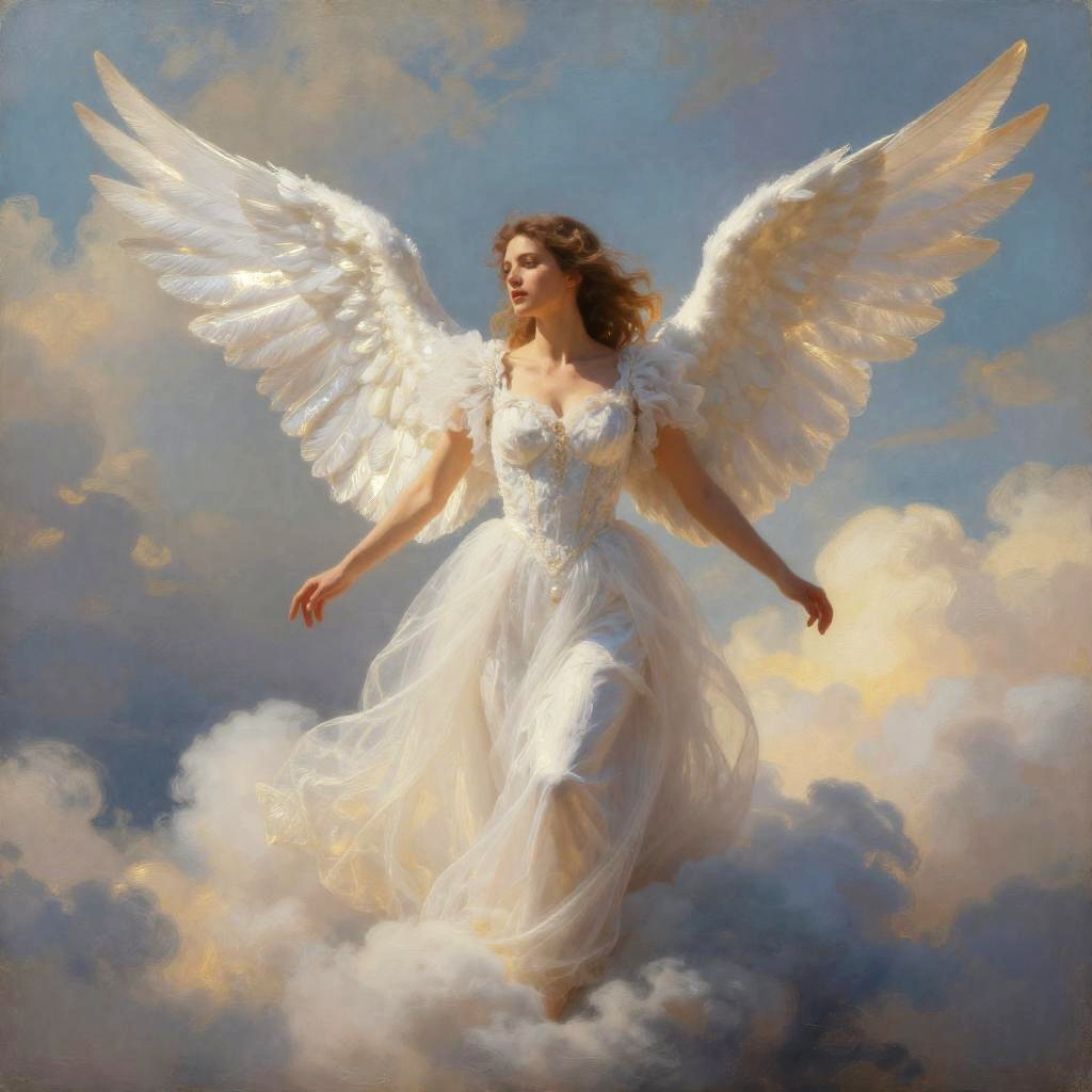 Seraph with angelic white hair, walking gracefully, every step mesmerizing, soft golden eyes, translucent peach skin, a vision of divine beauty and supernatural grace, ethereal and captivating.