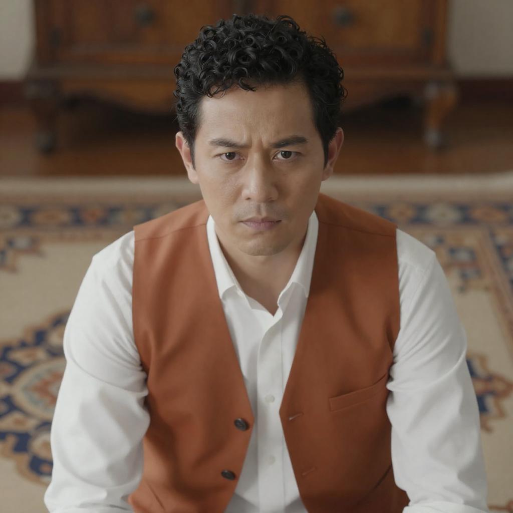 Stern Man Pours Tea in Dim Kitchen