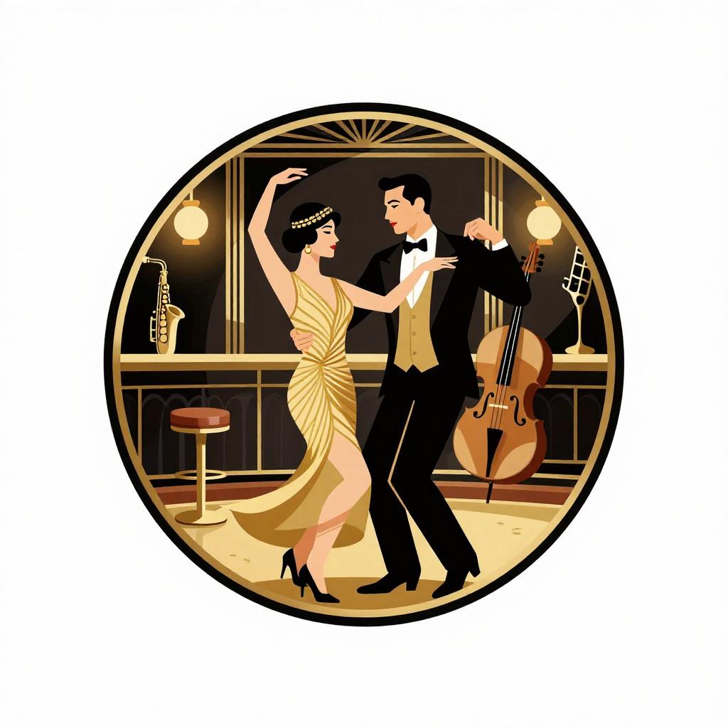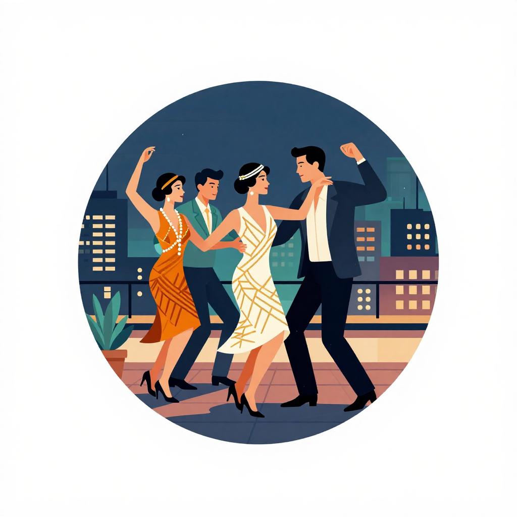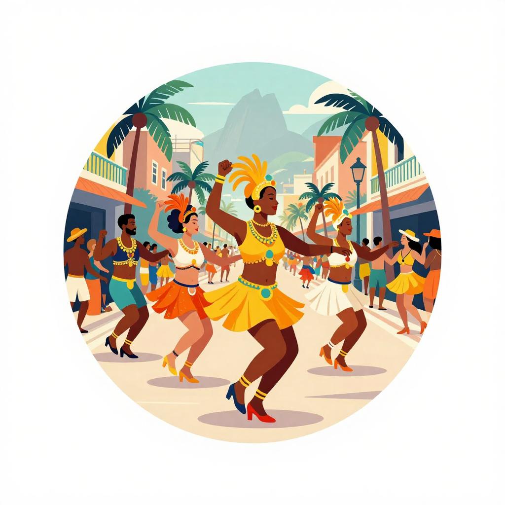 A circular avatar of baile folklórico dancers dancing on a sunlit urban plaza, in a flat art deco vector illustration with process art layers visible, t-shirt design ready, 8K best quality trending artwork, perfect line work and stroke, muted warm earth tones, white background.