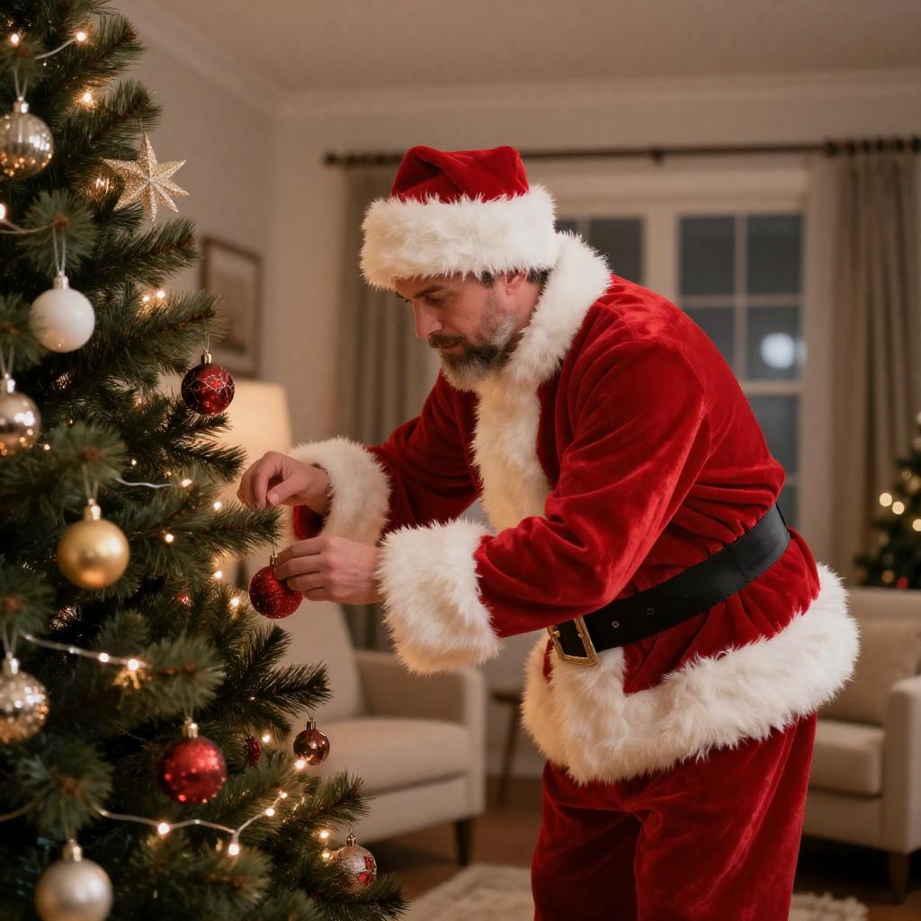 Festive Man Decorating Christmas Tree