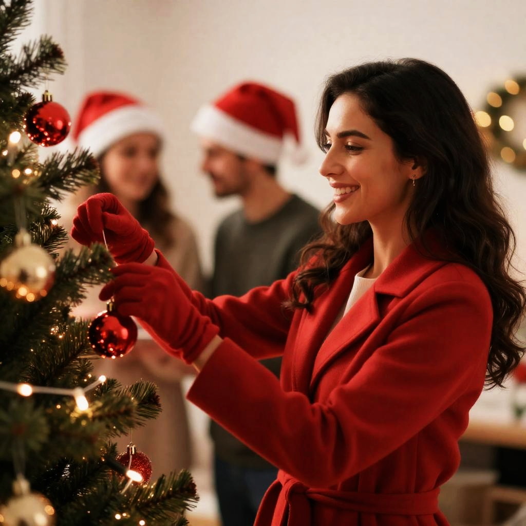 Festive Christmas Couple on Cobblestone Street