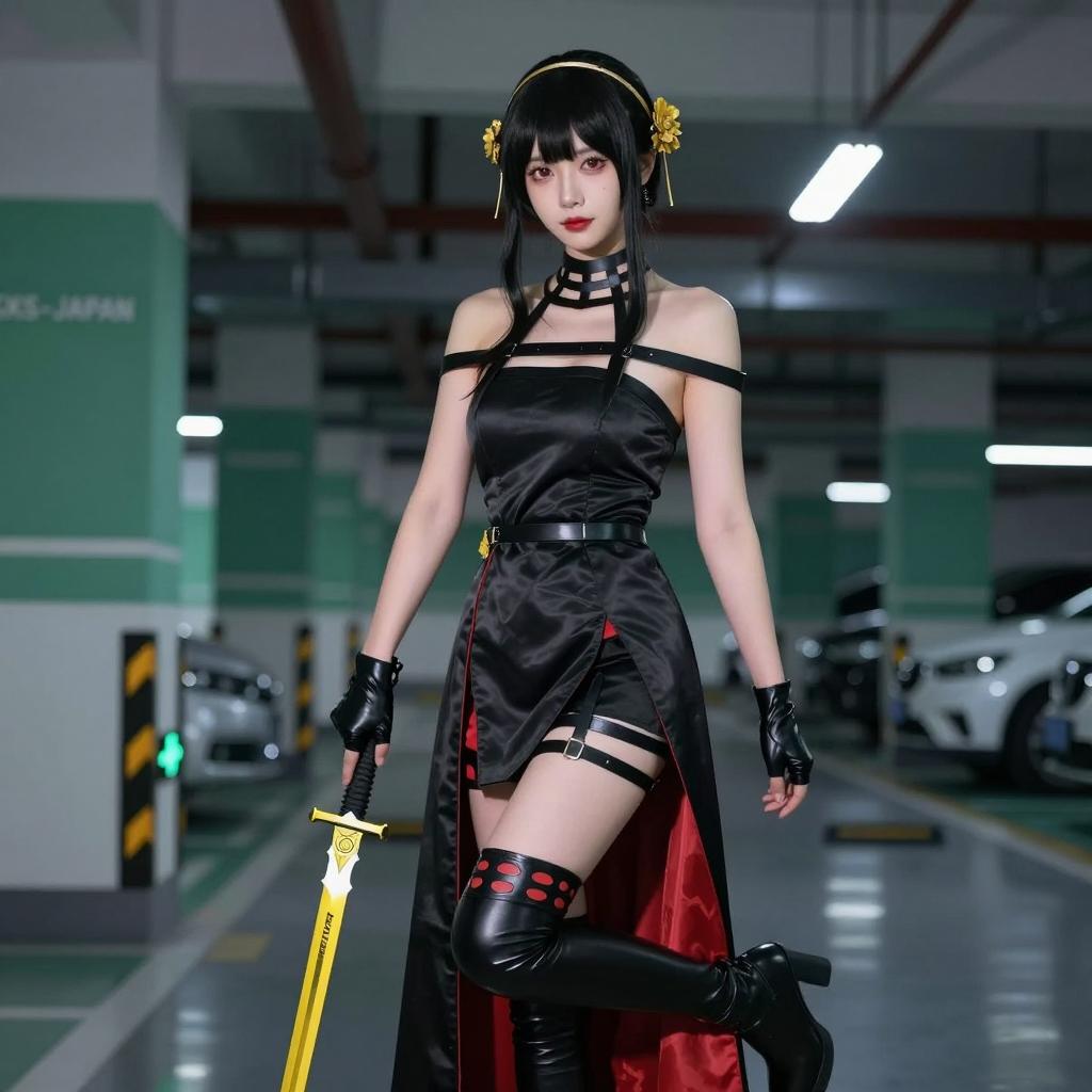 Confident Asian Cosplayer with Fox Elements