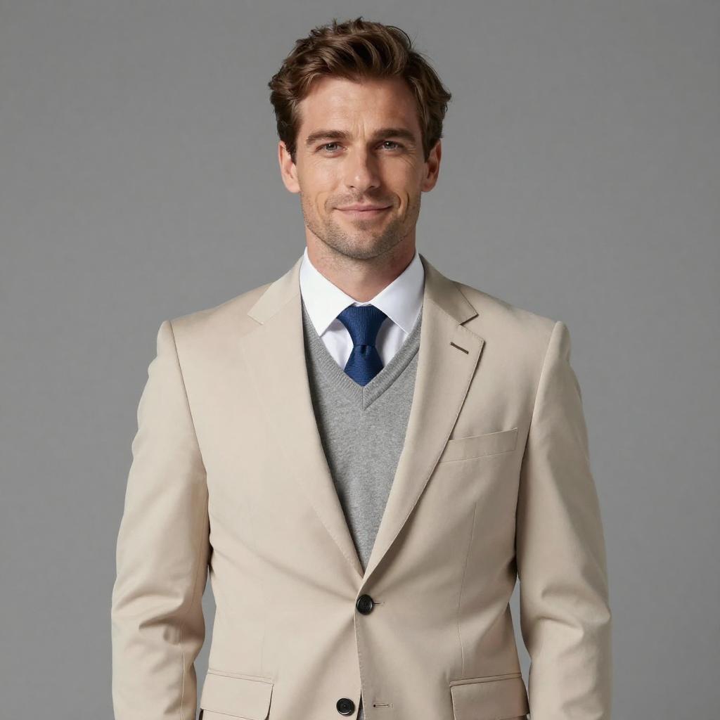 Handsome Man in Beige Suit Portrait
