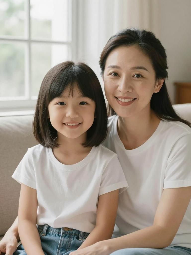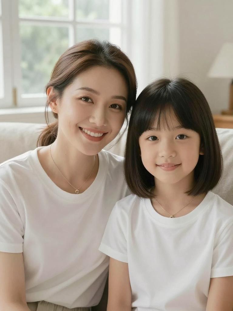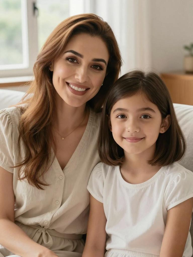 Warm Mother-Daughter Cozy Living Room Portrait