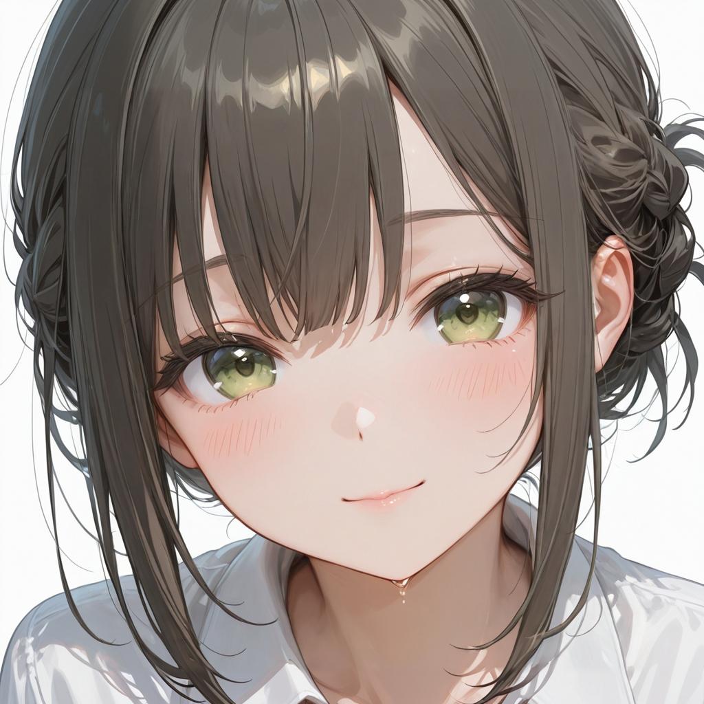 1girl, moyou, bangs hairstyle, face, white background, smile
