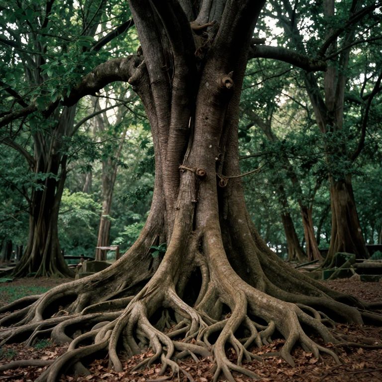 Where ancient roots descend like guardians of forgotten secrets, the forest whispers of timeless serenity, inviting contemplation beneath the weight of history and the embrace of nature’s enduring embrace.