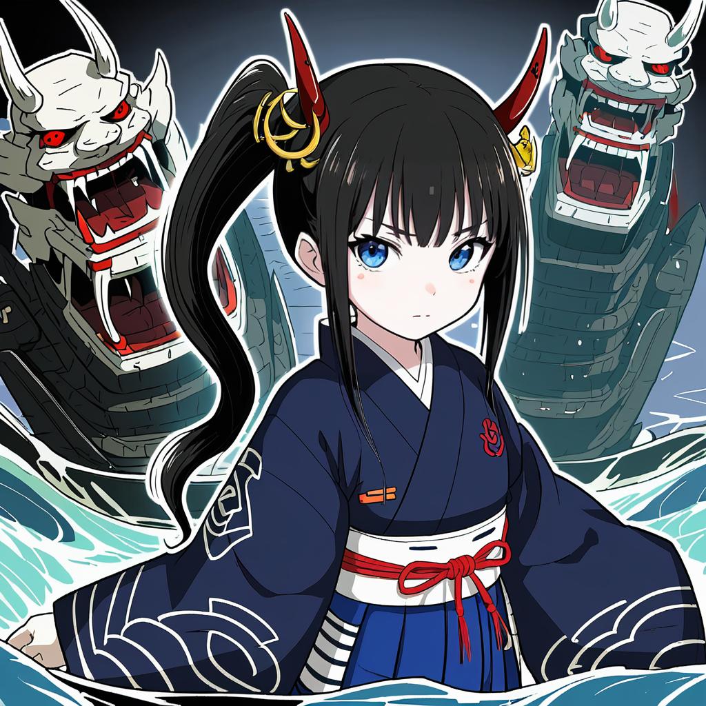 Illustration of Ancient destroyer oni, kantai collection in the style of Takeyuu