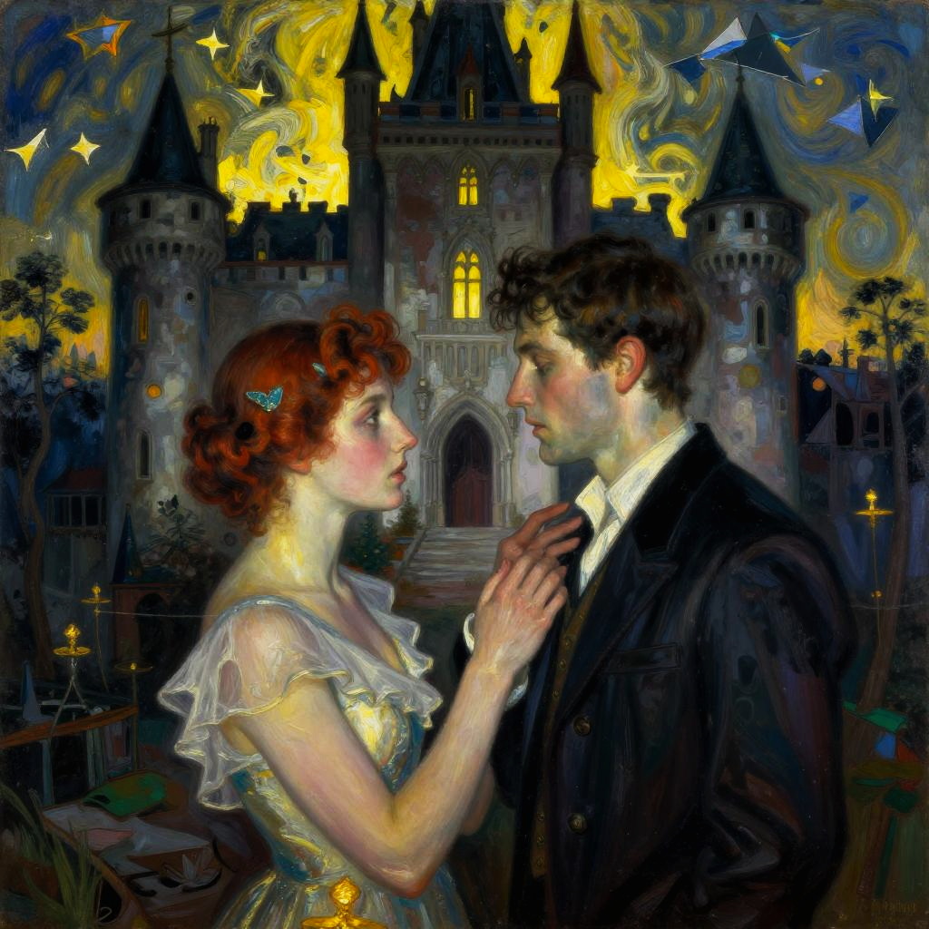 Horror scene of two lovers separated by a forcefield, in Graffiti art style with fairy lighting, highly detailed urban alley with volumetric lighting and HDR