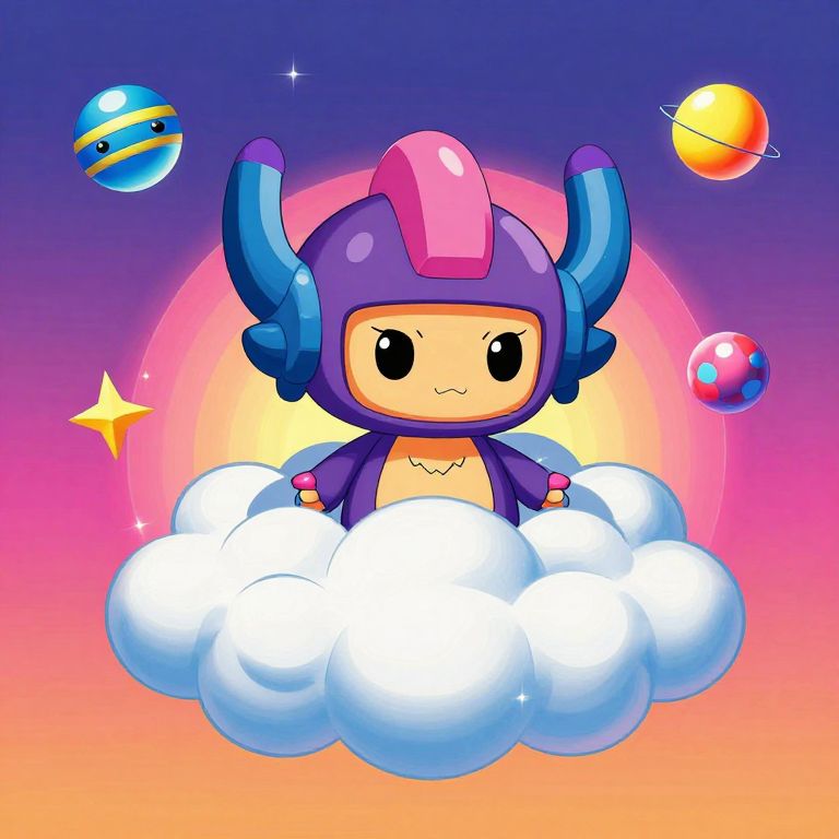 Passionate 1980s movie poster featuring a cartoony and scifi theme bright and colorful with a Guku on clouds as the centerpiece no border fill the screen,