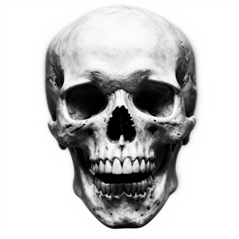 Despairing an angry skull, pointalism, super detailed, glitch effect going through the middle, black and white,