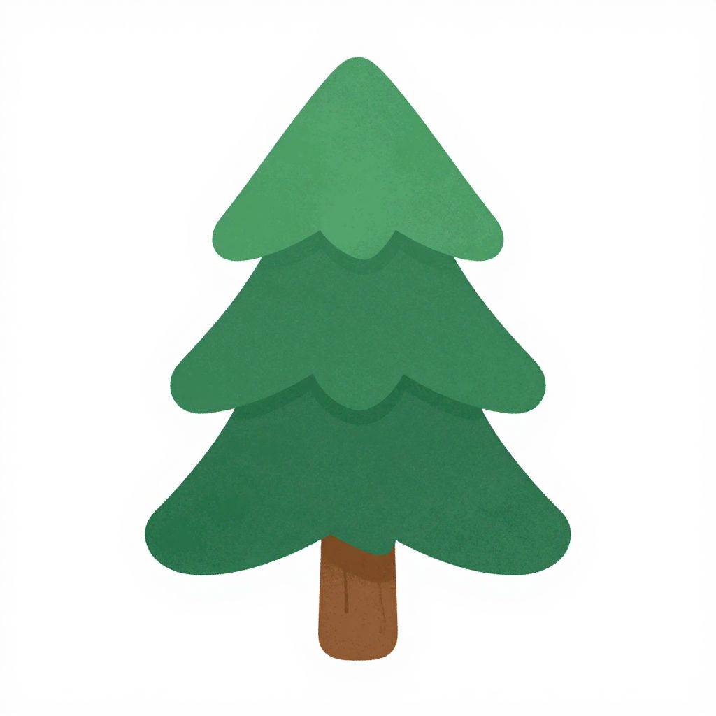 "Creativity children’s book style illustration of a pine tree spruce tree flat colour, round edges, simple cutout, minimalist, modern Scandinavian style,"