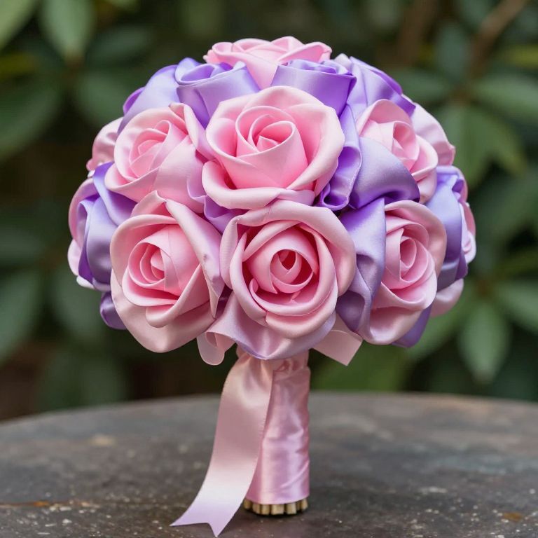 Country style silk ribbon bouquet, available in pinks or purples - weddingniknaks