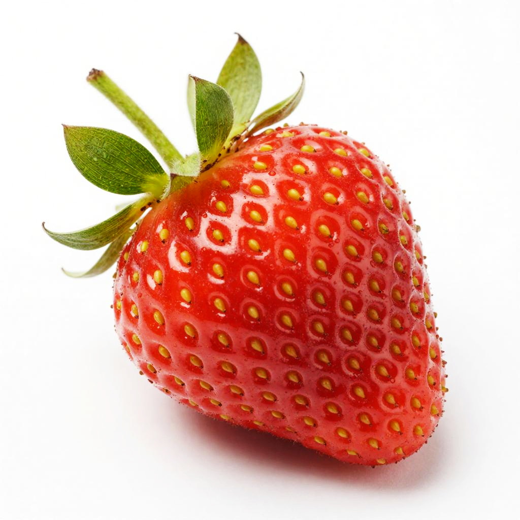 Glossy Red Strawberry on White Background
