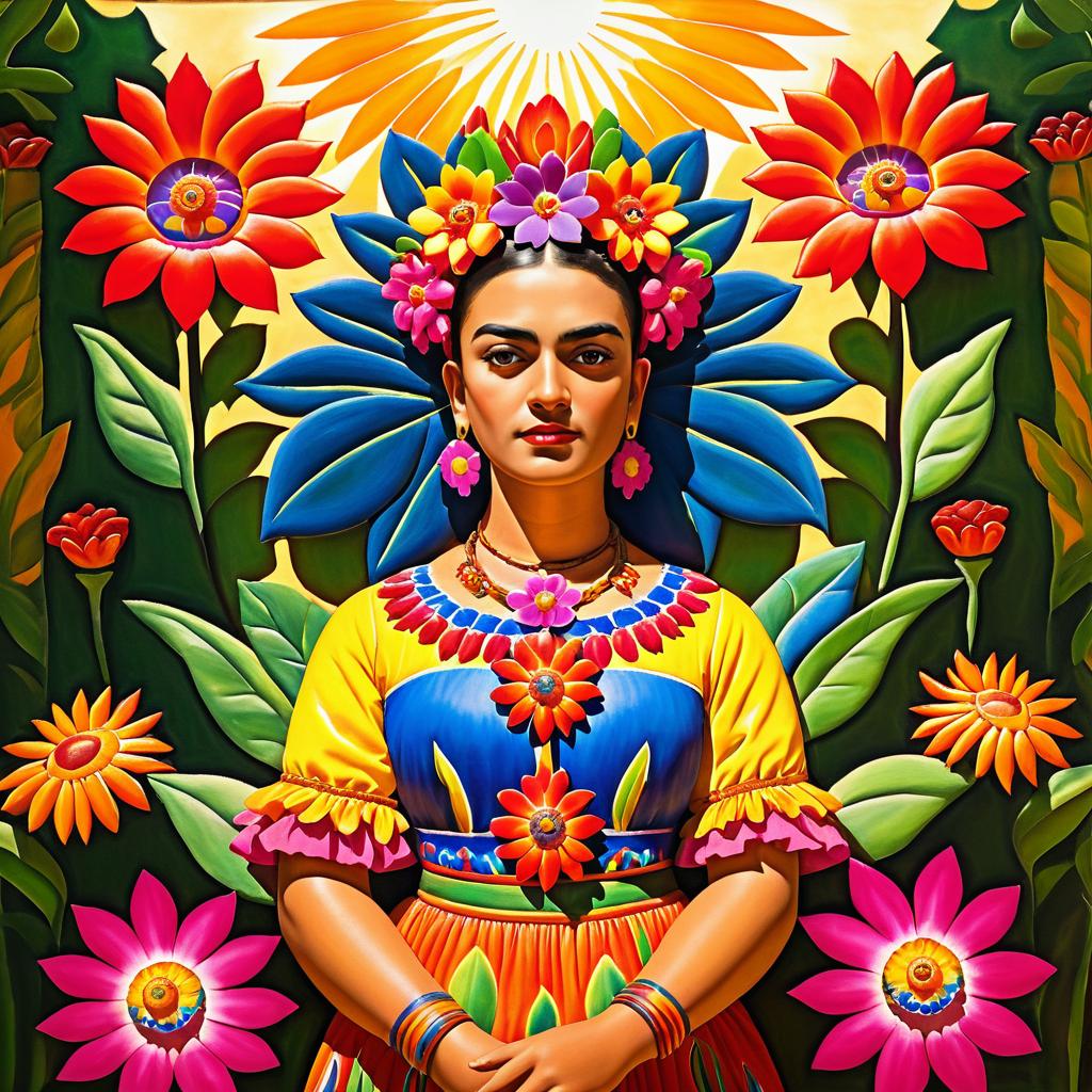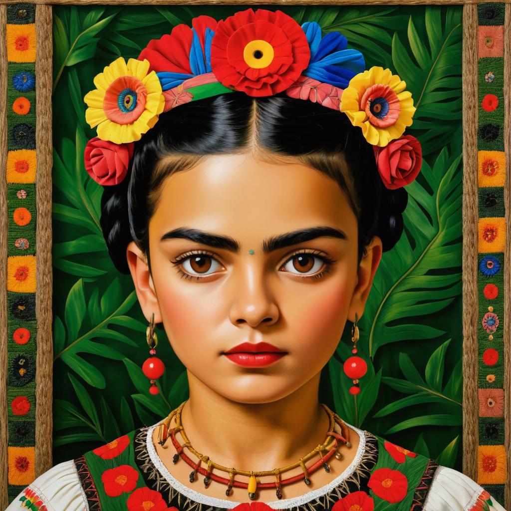 Realistic Portrait of Young Girl in Frida Kahlo Style