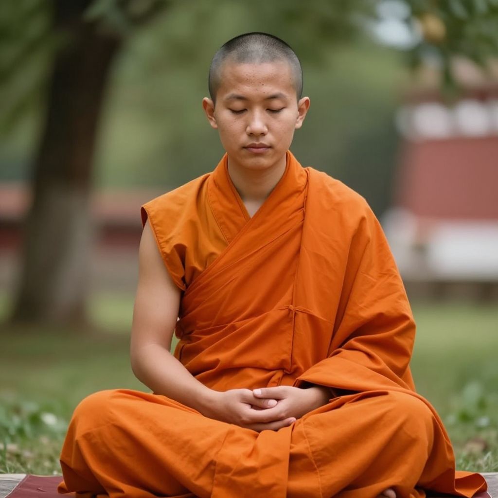 Meditating Buddhist Monk in Tranquil Monastery