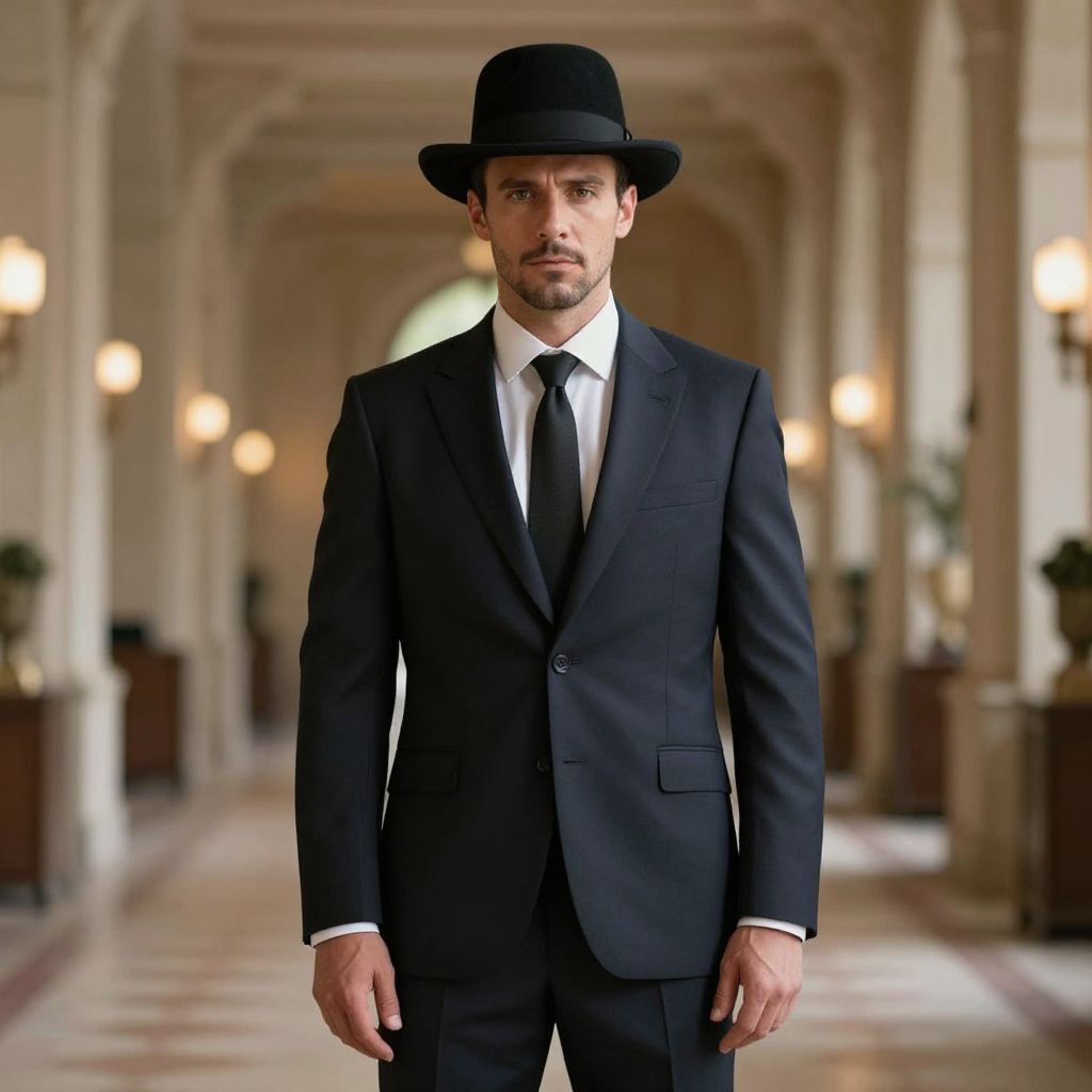 Nice Costume, man in a suit and hat standing in a hall