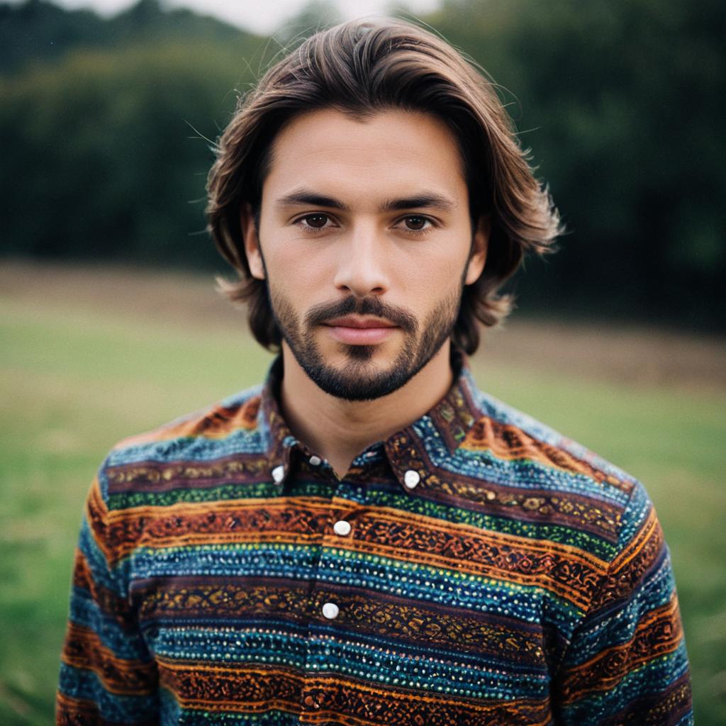 Young Man in Red Shirt Standing in Wheat Field