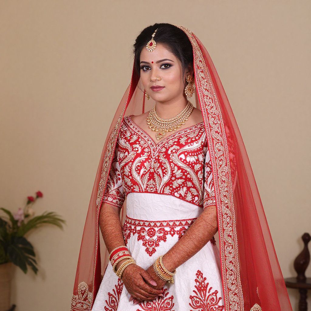 "Veere Wedding, a woman in a red and white bridal dress with a veil"