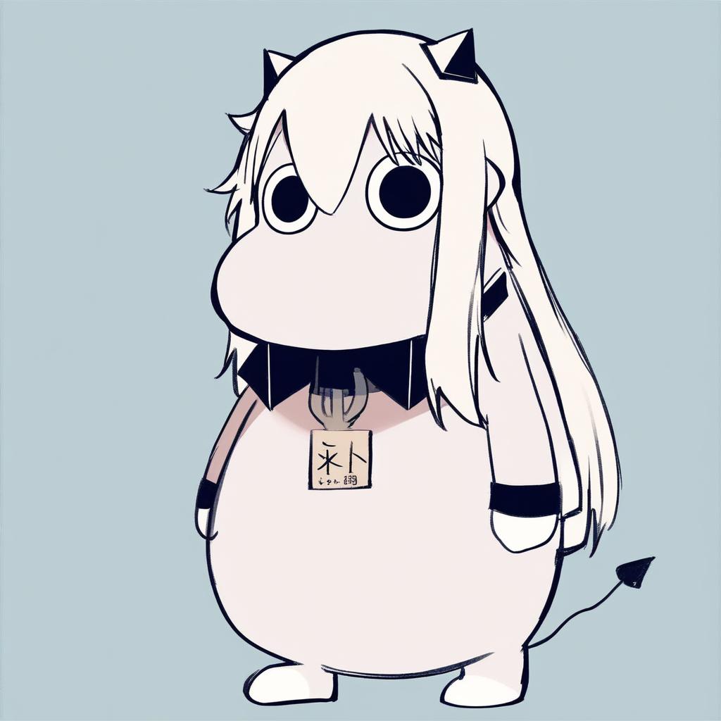 Muppo, kantai collection, 1girl, horns, tail, hair between eyes, solid circle pupils, long hair, sidelocks, collar, mittens, by artist soukou makura, leet