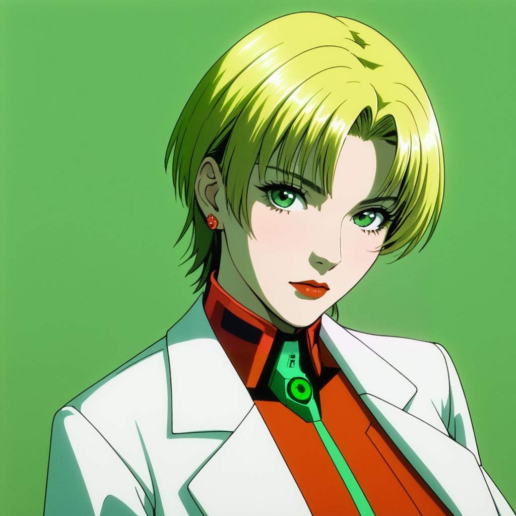 Akagi ritsuko, neon genesis evangelion, 1girl, green eyes, mole under eye, short hair, blonde hair, large breasts, medium breasts, lab coat, earrings, lipstick, by artist sakurai makoto (custom size), illustrious