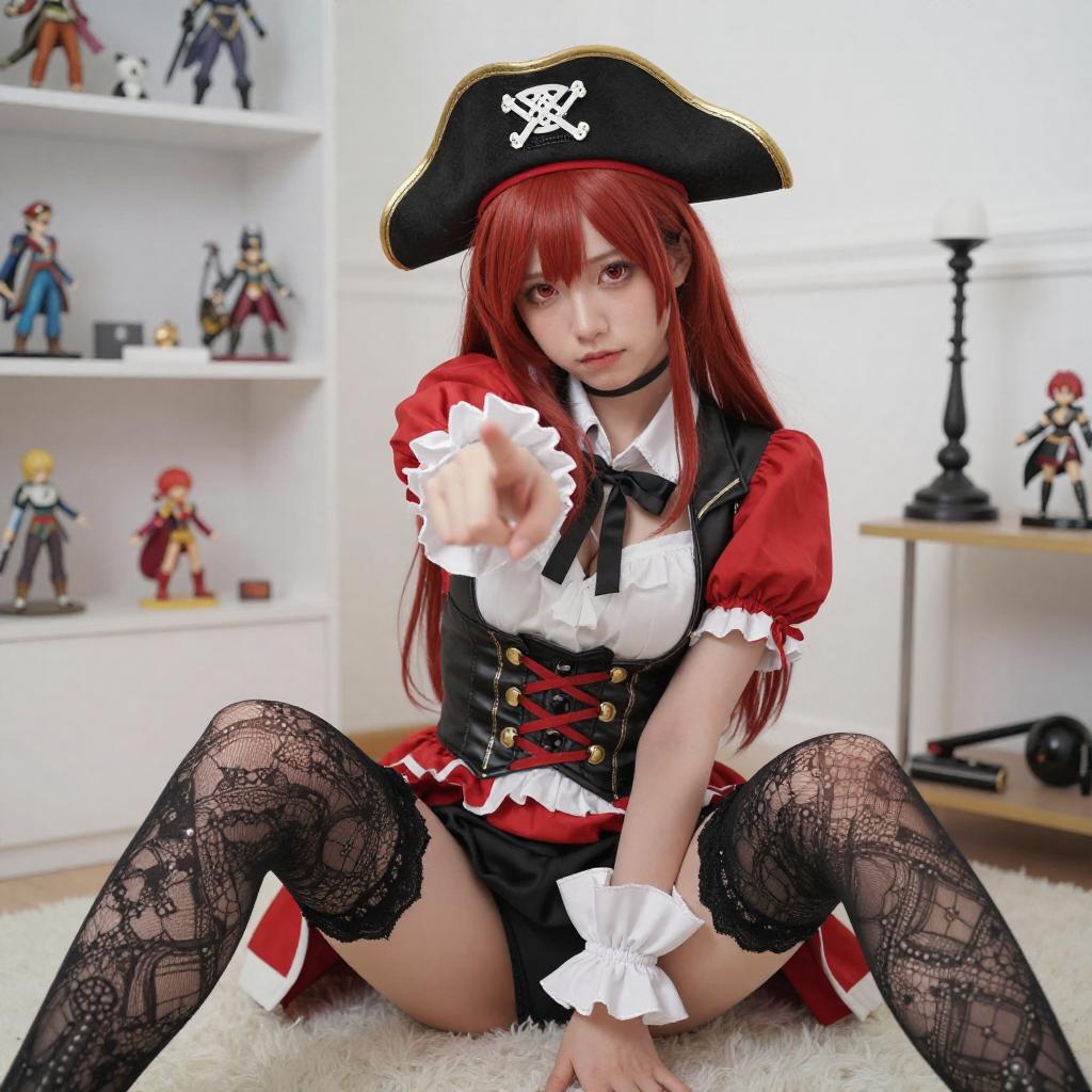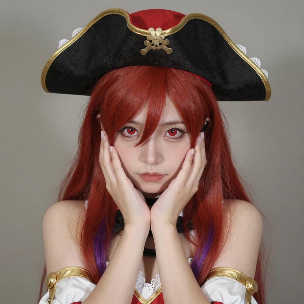 Pirate Cosplay Woman with Red and Blue Hair