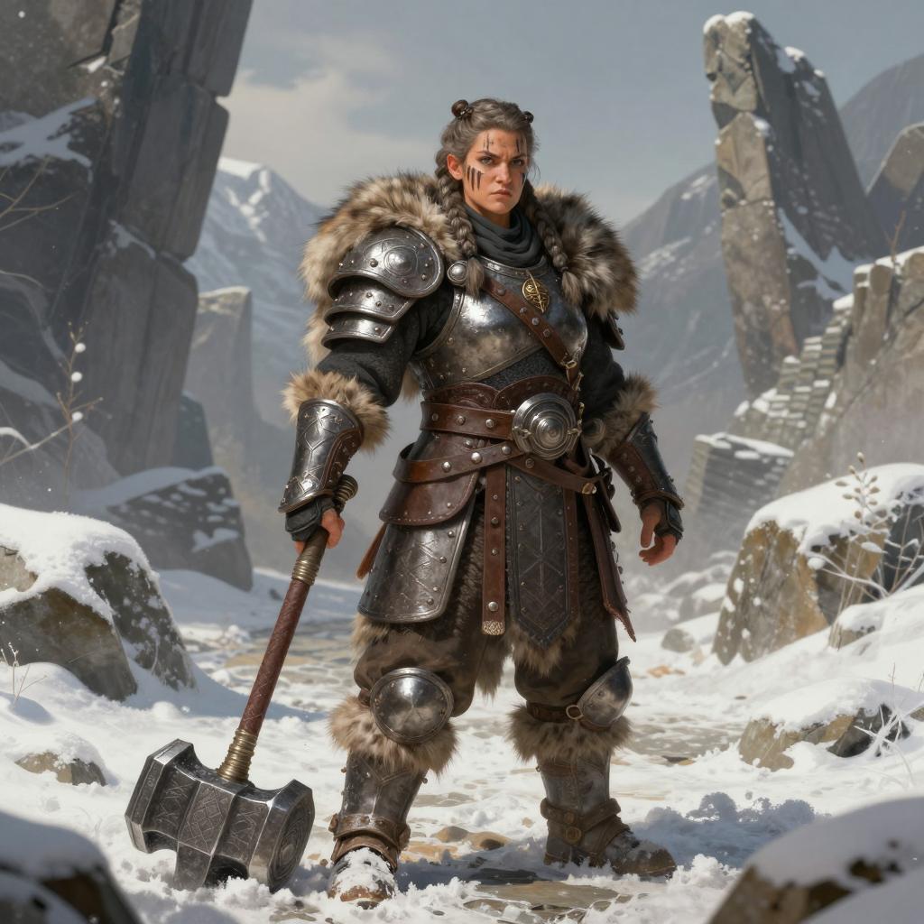 Cinematic Female Dwarf Warrior Illustration