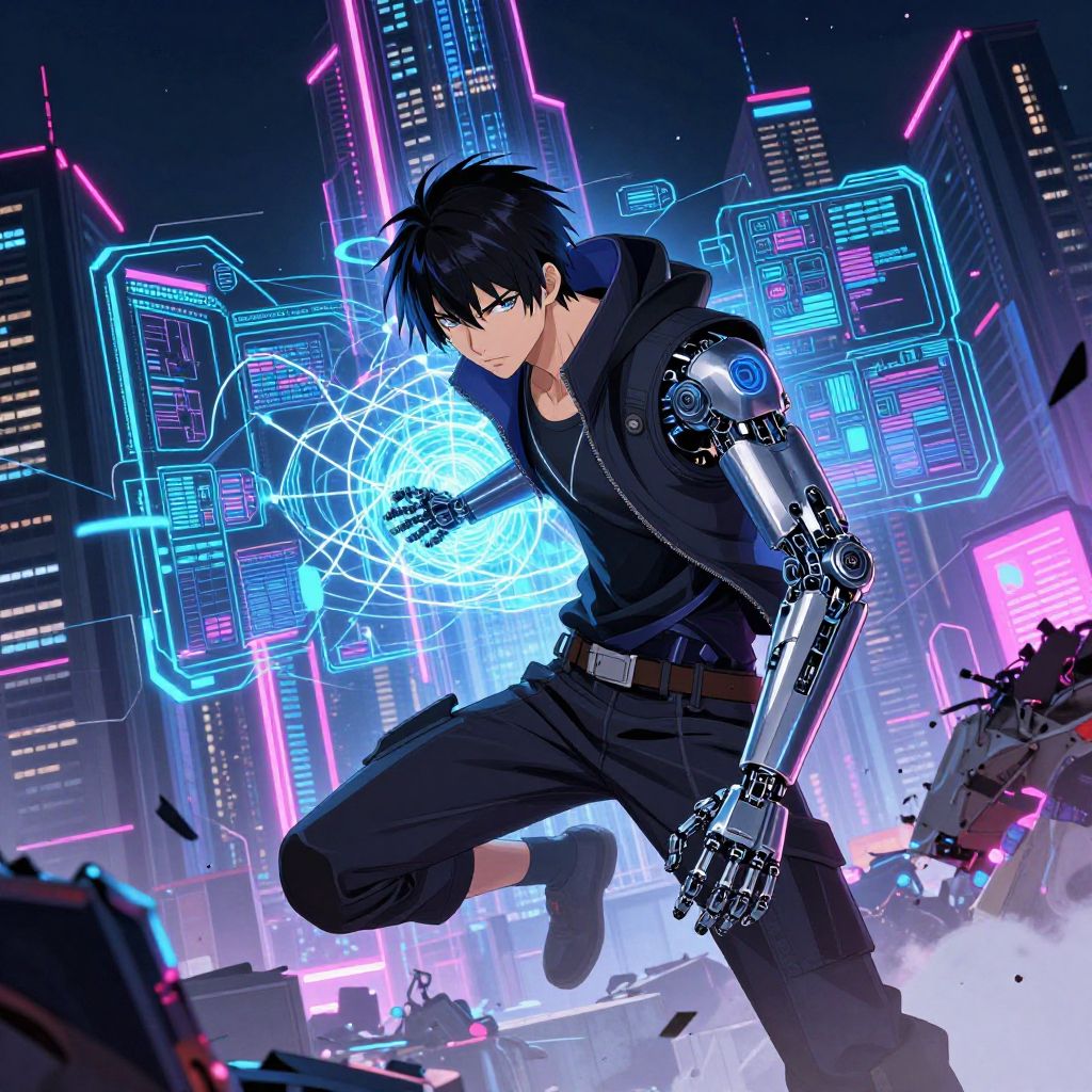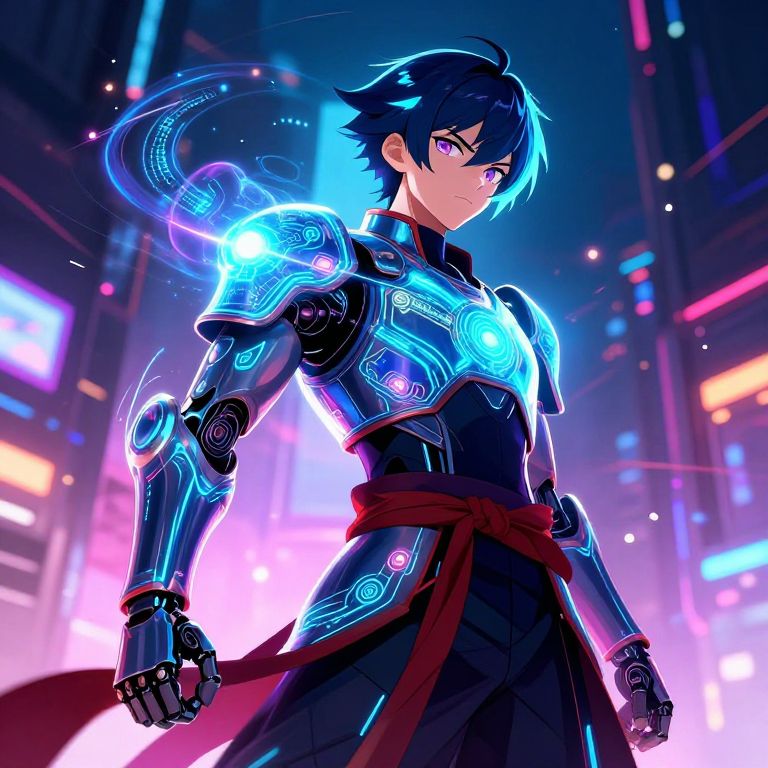 Anime DJ Creating Glowing Mathematical Patterns