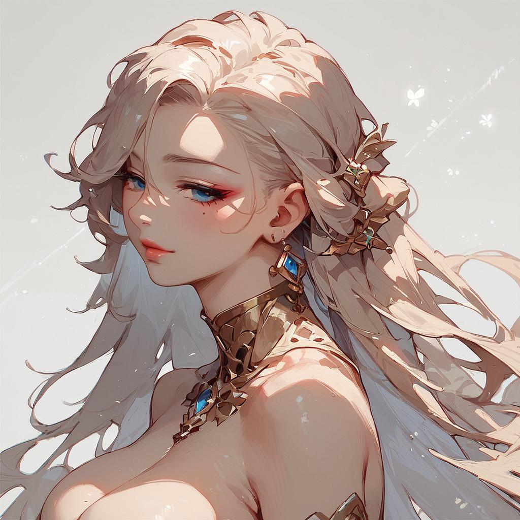 Gilded Futuristic Anime Portrait with Sultry Gaze