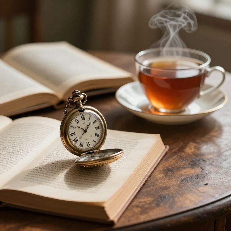 Wecker featuring classic retro style with bold numbers and twin bells, placed on a cluttered desk with scattered stationery and a cup of tea, warm golden hour light highlighting the textures and creating nostalgic vibes reminiscent of the 1950s.