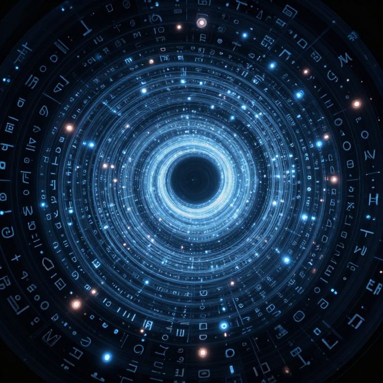 A luminous, infinite tunnel spirals inward, its walls adorned with cryptic symbols and glowing orbs, inviting the viewer into a mesmerizing vortex of light and mystery.