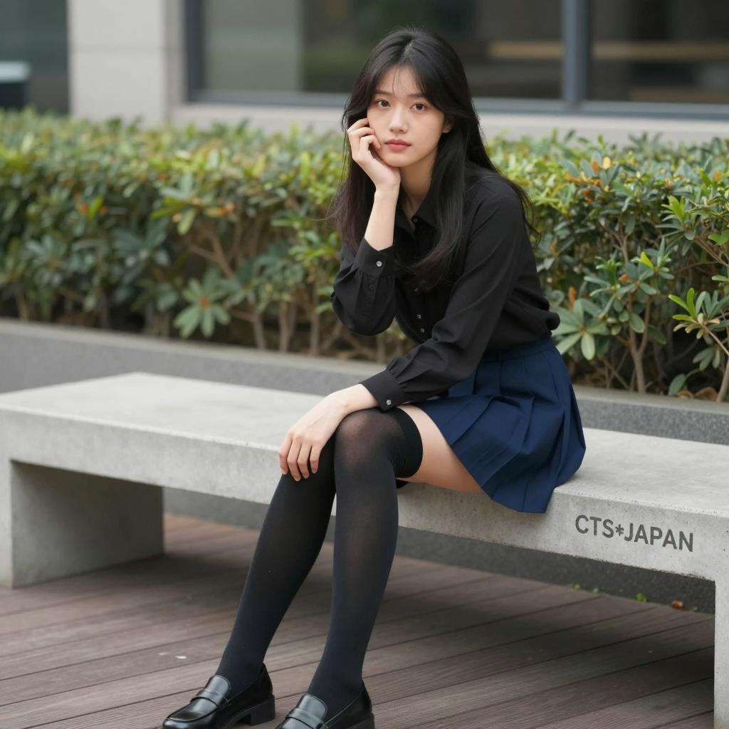 Stylish Asian Woman on Stone Stairs