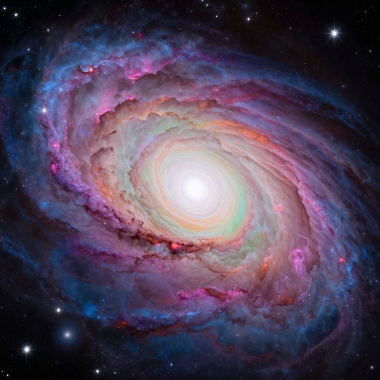 Scpres featured in an abstract cosmic scene with swirling galaxies, vibrant nebulae, and sparkling stars, bright color gradients blending smoothly, surreal space art with a sense of vastness and mystery
