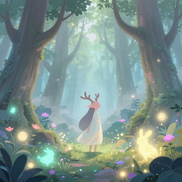 Mythical Forest Spirit with Glowing Flora